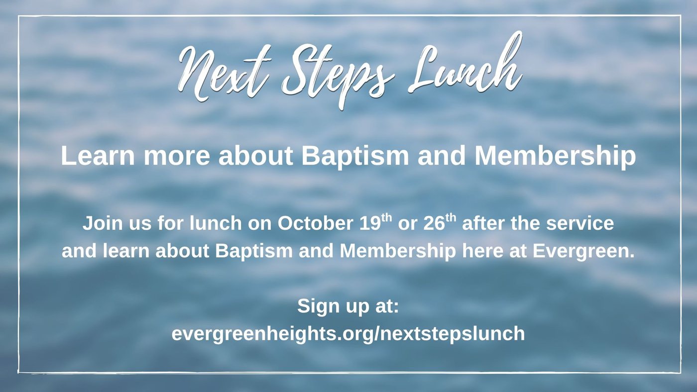 Gather for lunch and learn about baptism and membership at Evergreen!